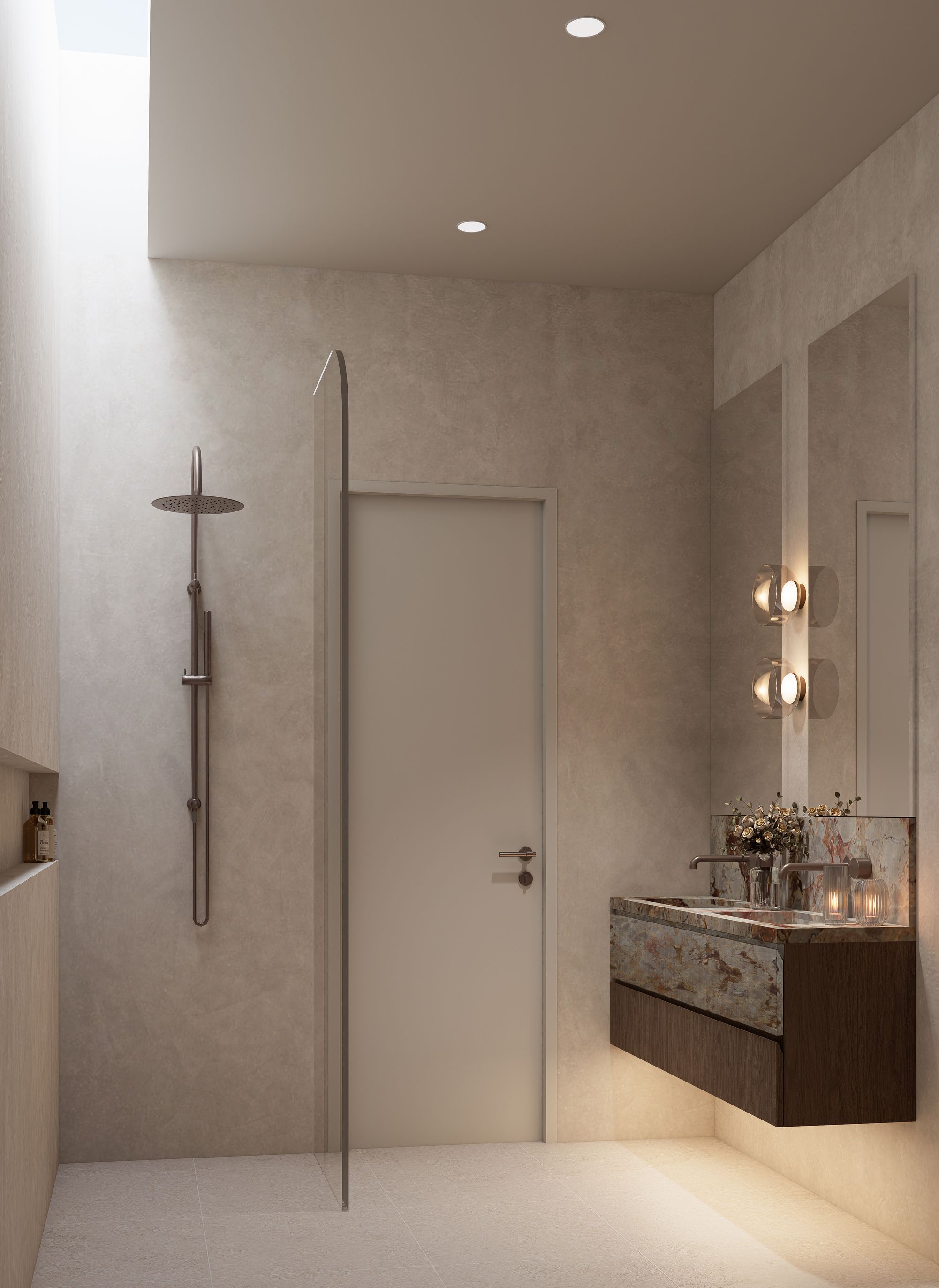 Experience the rich texture of earthy materials, brushed brass fittings, and the natural beauty of real marble. The warmth of engineered timber flooring, exquisite cabinetry, and curated finishes blend perfectly with landscaped surrounds and natural stone features that frame the pool — creating an atmosphere of timeless luxury.